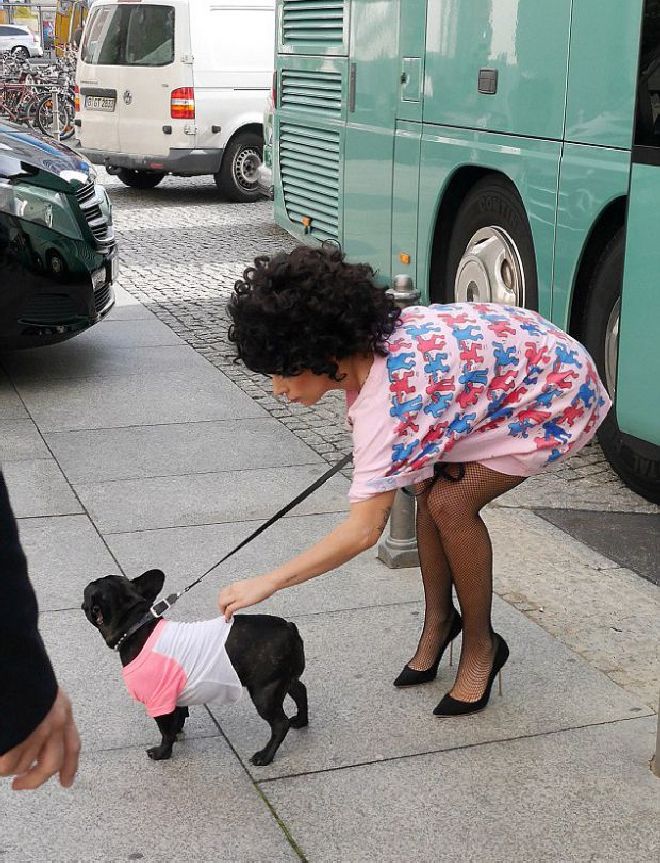 Същото се отнася и за кучето й, което от своя страна демонстрира страхотен модел стил по тениска с розов акцент в предната част. Сигурно се сетихте коя личност визираме. Лейди Гага все пак е малко „ГА ГА“ и може да си позволи всичко, да пее за каквото си пожелае и да се появява с най-странните тоалети, за които можем да се сетим. Феновете й в Берлин се насладиха на рядък момент, наблюдавайки как любимата им певица разхожда кученцето си, пише woman.bg.