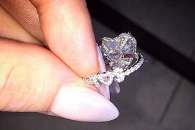 Пръстенът на Гага е с огромен диамант във формата на сърце, в който се мъдрят буквичките "Т" и "С" разделени със сърце.