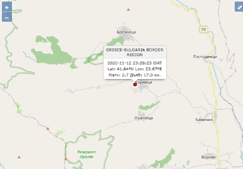 Земетресение с магнитуд 2.6 е регистрирано тази нощ в района на селата Корница и Брезница в област Благоевград.