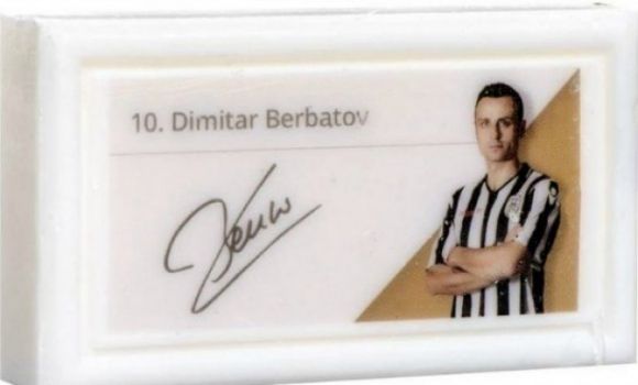 Популярността на Димитър Бербатов в ПАОК достигна такива измерения, че ликът му вече стои и върху сапун. Продуктът за лична хигиена може да бъде закупен от официалния феншоп на цена 2,90 евро. "Размерът на сапуна е 9х5 см. Автографът на Бербо няма да изчезне и след многократна употреба", гарантират от ПАОК.