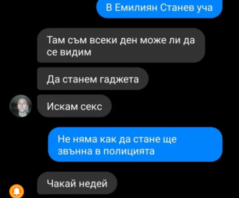 По думите ѝ 25-годишният Диян Ангелов е писал съобщение на нейната дъщеря. Детето е в 7 клас.