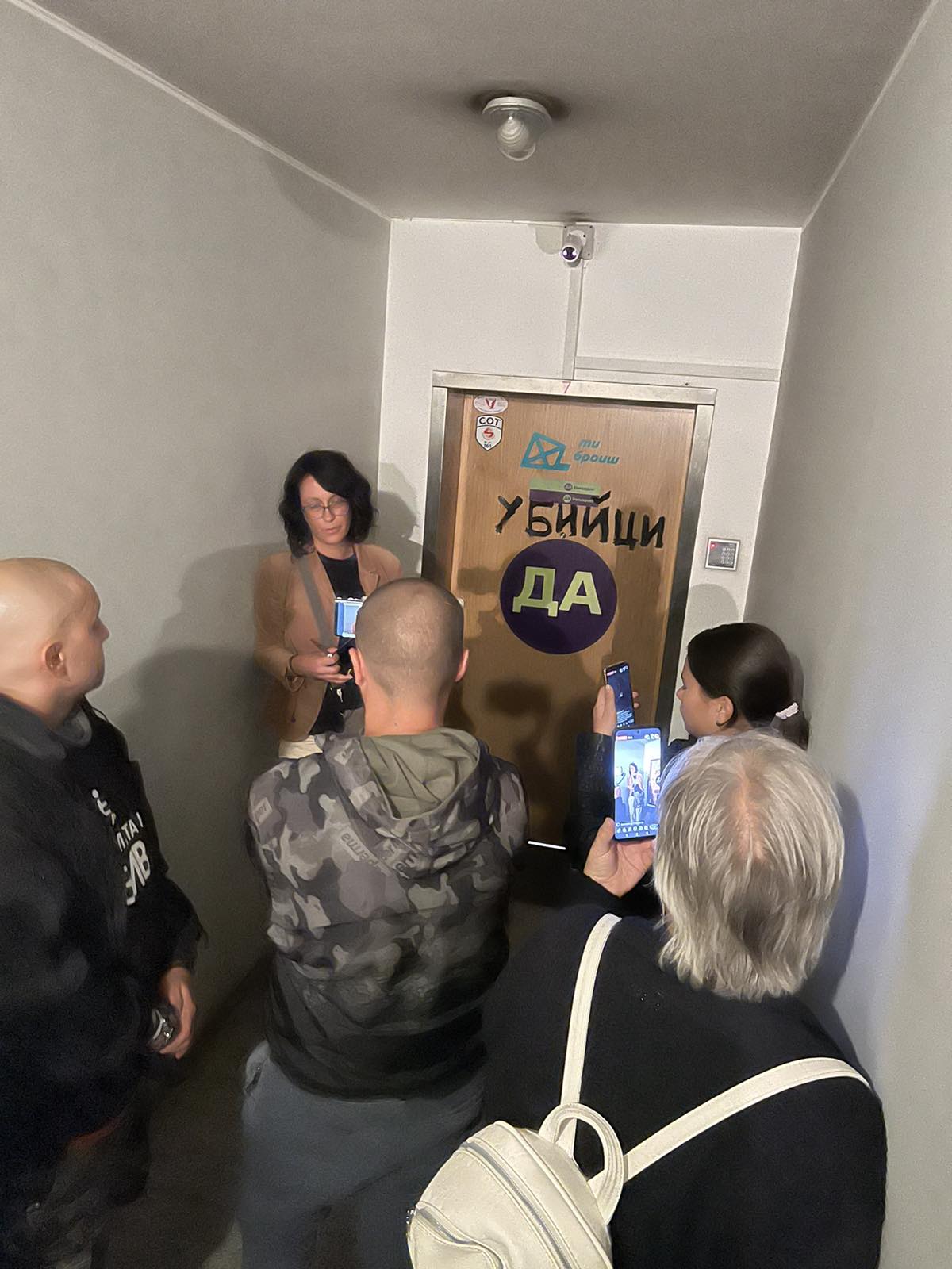 Спонтанен протест и надпис “убийци” се появи на вратата на офиса на политическа партия “Да, България” тази вечер.