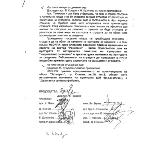 За конкретния казус ще му е лесно да си отговори защо се стигна дотук- началникът на кабинета му е един от експертите, които през 2003 година отнемат статута на театър Ренесанс и ограничават съществено възможностите на всички останали институции да защитят сградата, изтъква Едрева, насочвайки министъра на културата Велислав Минеков.