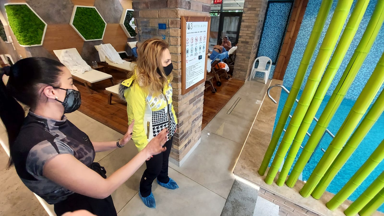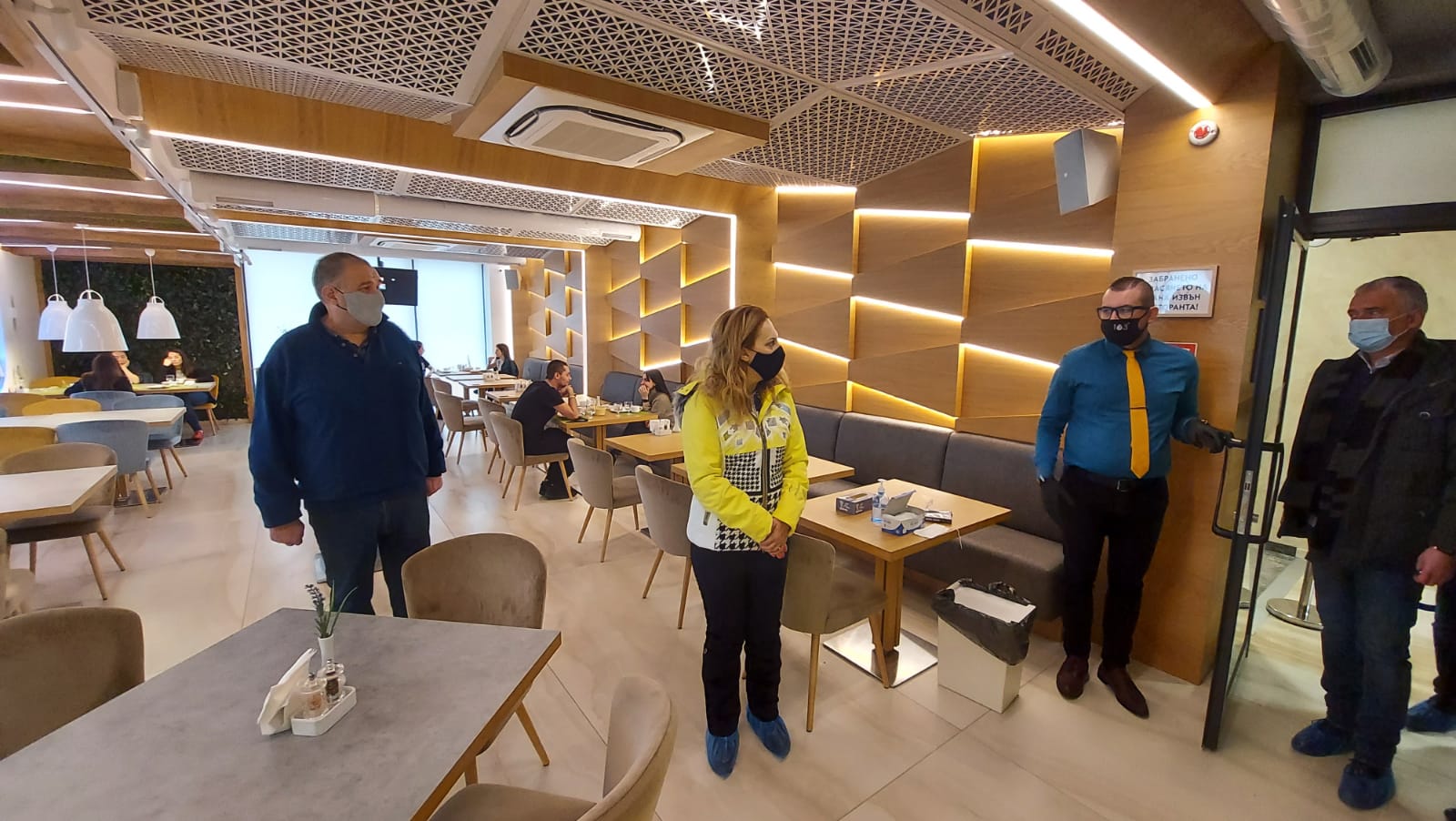 Вицепремиерът подробно провери дали се спазва дистанцията в ресторанта, както и спа центъра към хотела, където дезинфекцията се извърша на всеки 30 минути.