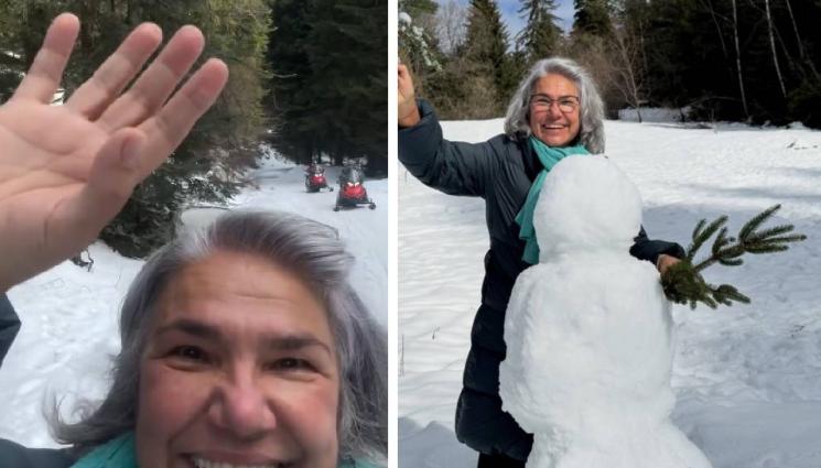 В същия ден Вачкова се възползва от благоприятните климатични условия да си направи и снежен човек. Украси го по традиционния начин - с борови клонки.