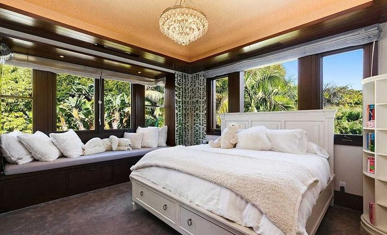 Къщата разполага със седем спални и десет бани, има стая за игри, бар, фитнес салон, кино салон, винарна, басейн и уникален двор, пише "Ева".