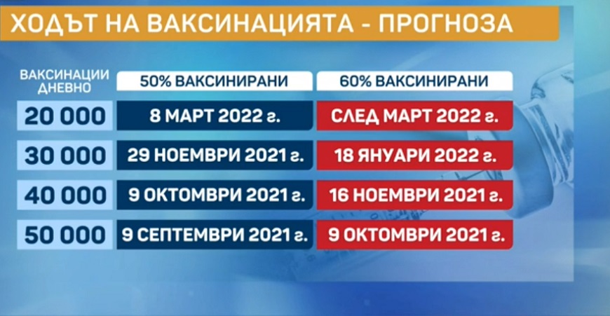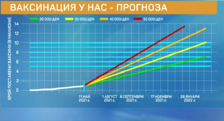Той уточни, че трябва да се правят по 50 000 ваксинации на ден, за да имаме колективен имунитет през месец октомври. Тогава ще е ваксинирано 60% от населението.