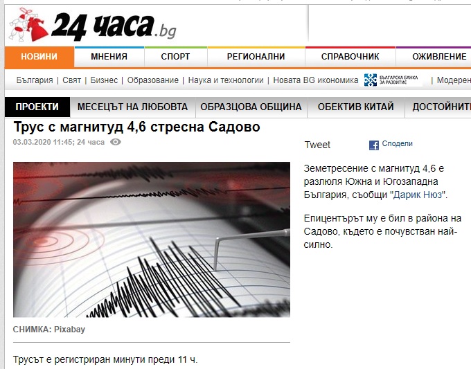 Новина за трус от над 4 по рихтер, публикувана преди минути първо в Нова тв, стресна пловдивчани, тъй като бе обявено, че земетресението е било край Садово с магнитуд 4,6 по Рихтер. За минути непроверената информация обиколи куп други медии.
