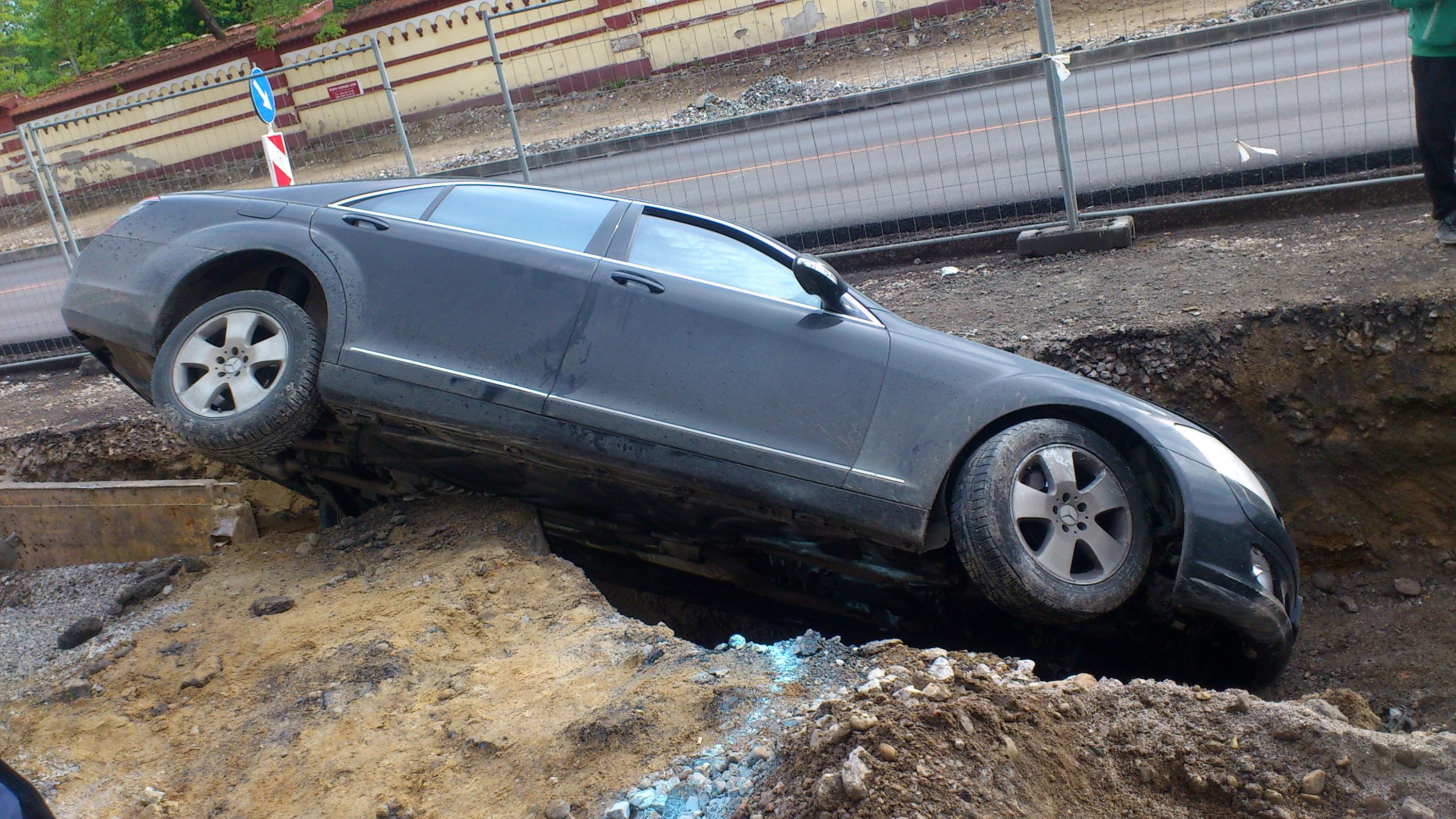 Автомобил "Mercedes S 500" навлязъл с несъобразена скорост в ремонтната лента до Семинарията.