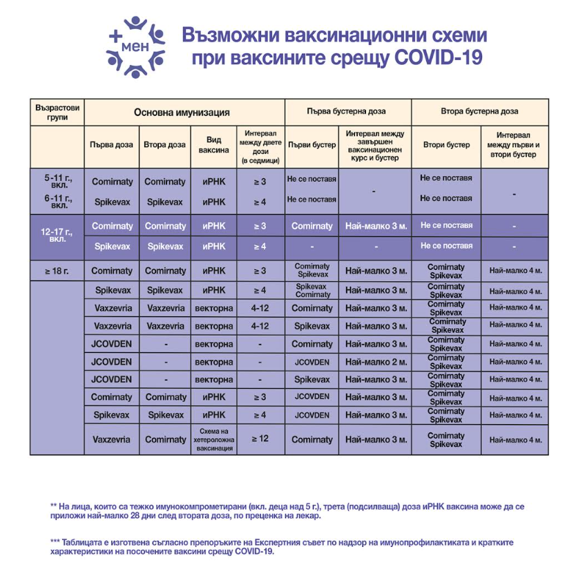 Министерството на здравеопазването одобри препоръките на Експертния съвет по надзор на имунопрофилактиката относно прилагането на втора бустерна доза иРНК ваксина при всички желаещи лица на и над 18 г., получили първична имунизация с ваксината на Janssen. Втората бустерна доза може да се приложи най-малко 4 месеца след първия бустер при лица, имунизирани с ваксината на Janssen.