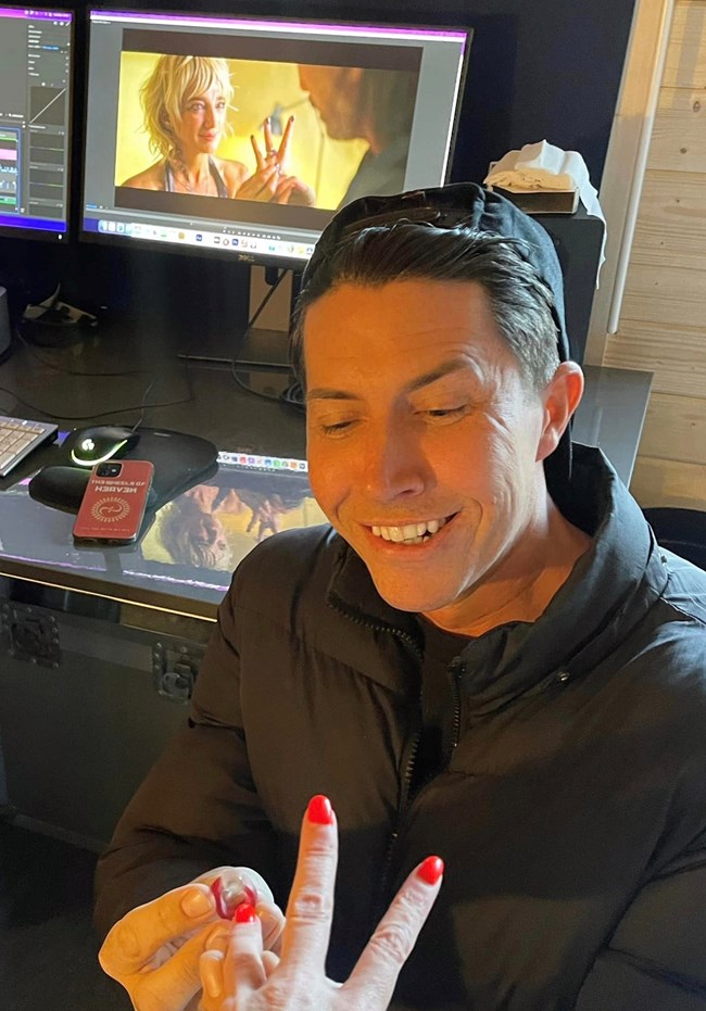 "Казах: "Да!" на Бен Чарлз Едуардс по време на постпродукцията в Лондон на филма ни "Колелата на рая". Щастлива съм."