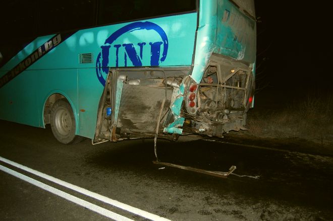 Двигателят му е прекъсвал и той е намалил много скоростта. В това време в задницата на автобуса се е блъснал микробус.