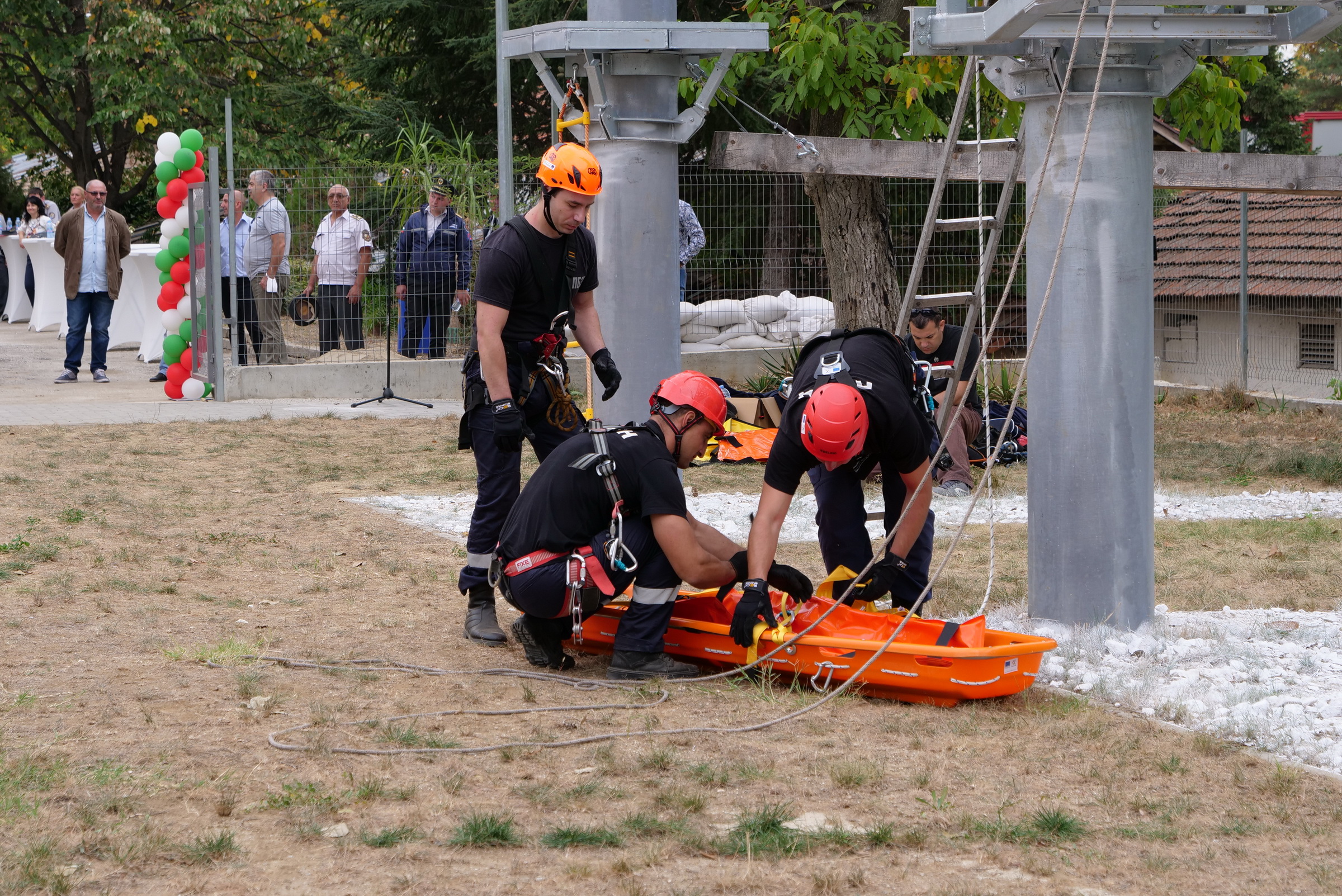 След официалната церемония пожарникари и спасители демонстрираха техники за справяне в рискови ситуации и показаха как практически ще бъдат използвани възможностите на новия полигон за усвояване на необходимите умения.