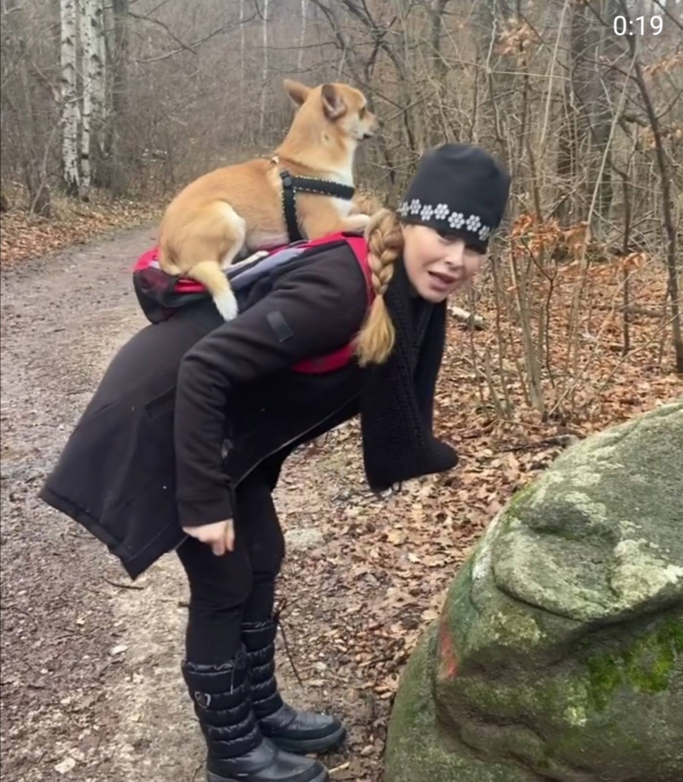 Често преходите са изморителни за дребния Найро и се налага стопанката му/майка му да го носи на гръб из Витошките пътеки.