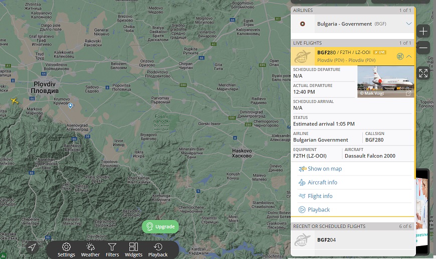 Малко след 13:00 часа пък "Фалконът" на властта полетя отново, този път от Пловдив към неизвестна посока. И пак без яснота кой е на борда.