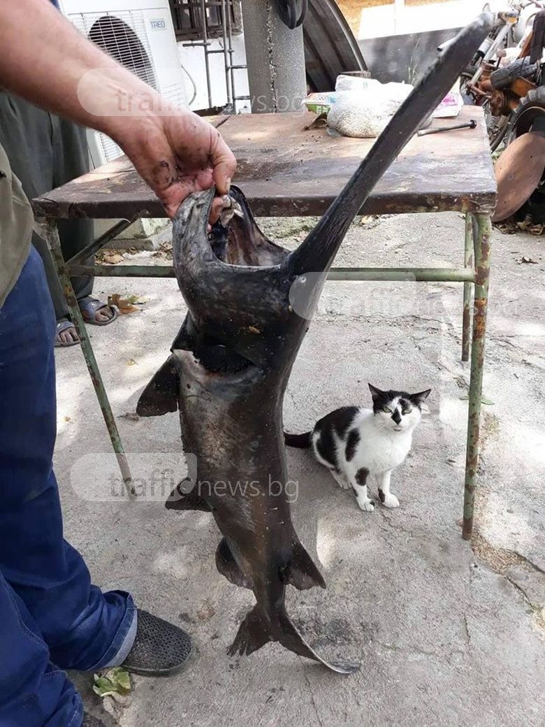 Видът се нарича веслонос. Тя е от разред есетрообразни и достига дължина до 2 метра и маса над 70 килограма. Родом тя е от Северна Америка и се среща често във водите на река Мисисипи. От няколко години обаче родни ферми започват да отглеждат и развъждат внесения вид. Месото на рибата е изключително вкусно, а хайверът ѝ е деликатесен.