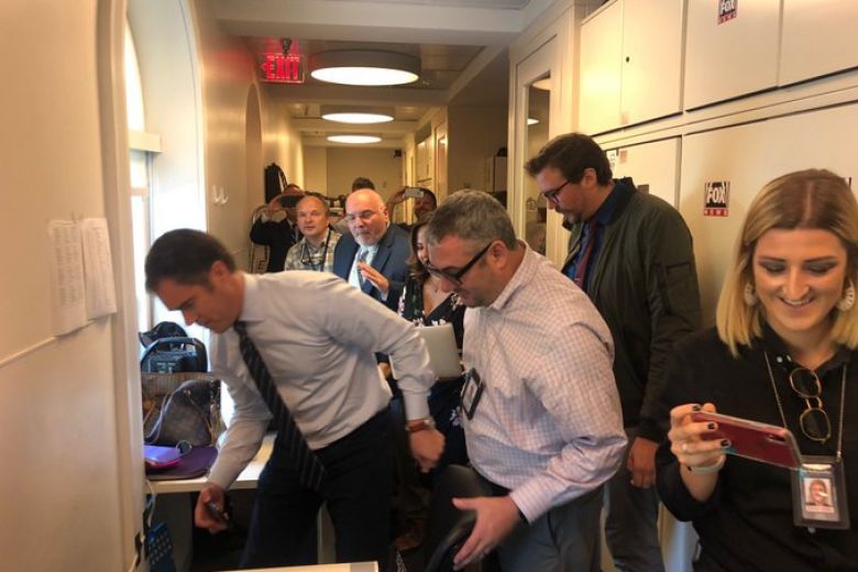 Потърпевшият беше Питър Алекзандър - кореспондент на телевизия Ен Би Си По-късно той написа в Туитър: "Има и други новини: мишка падна буквално от тавана на нашата зала в Белия дом и тупна право в скута ми".