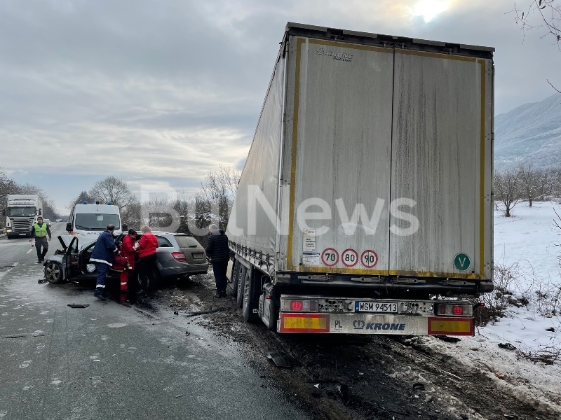 Лек автомобил "Мерцедес", управляван от млад водач от курортния град, който е пътувал към Монтана, е навлязъл в насрещното и се е забил челно в движещия се към Враца полски ТИР.