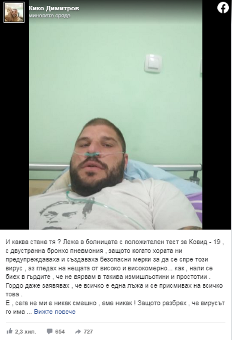 Оказва се, че той е един от многото, които не са вярвали в съществуването на китайския вирус. Нещо повече - той си признава, че се биел в гърдите и не вярва в подобни измишльотини. Гордо даже заявявял, че всичко е една лъжа и се присмивал на всичко това.