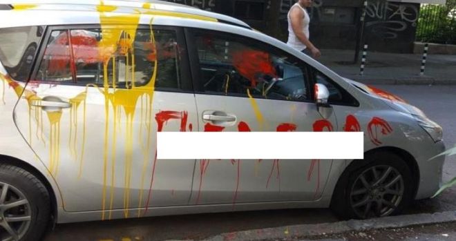 Автомобилът е и с нарязани гуми, а от едната му страна с боя е нашарен нецензурен надпис, написан доста неграмотно, съобщава "Нова Варна.нет".