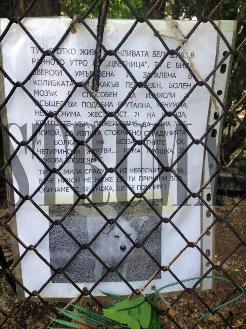 Тичай мила сладурка, из небесните поля. Вече никой не може да ти причини зло. Обичаме те Белушка, ще те помним! Такъв некролог бе залепен на мястото, където в утрото на „Цветница” в Благоевград бе убито по жесток и садистичен начин болно и сакато кученце.