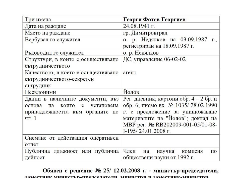 5. Георги Фотев - агент "Йолов" на мракобесното Шесто управление на ДС за борба с идеологическата диверсия и противообществените прояви;