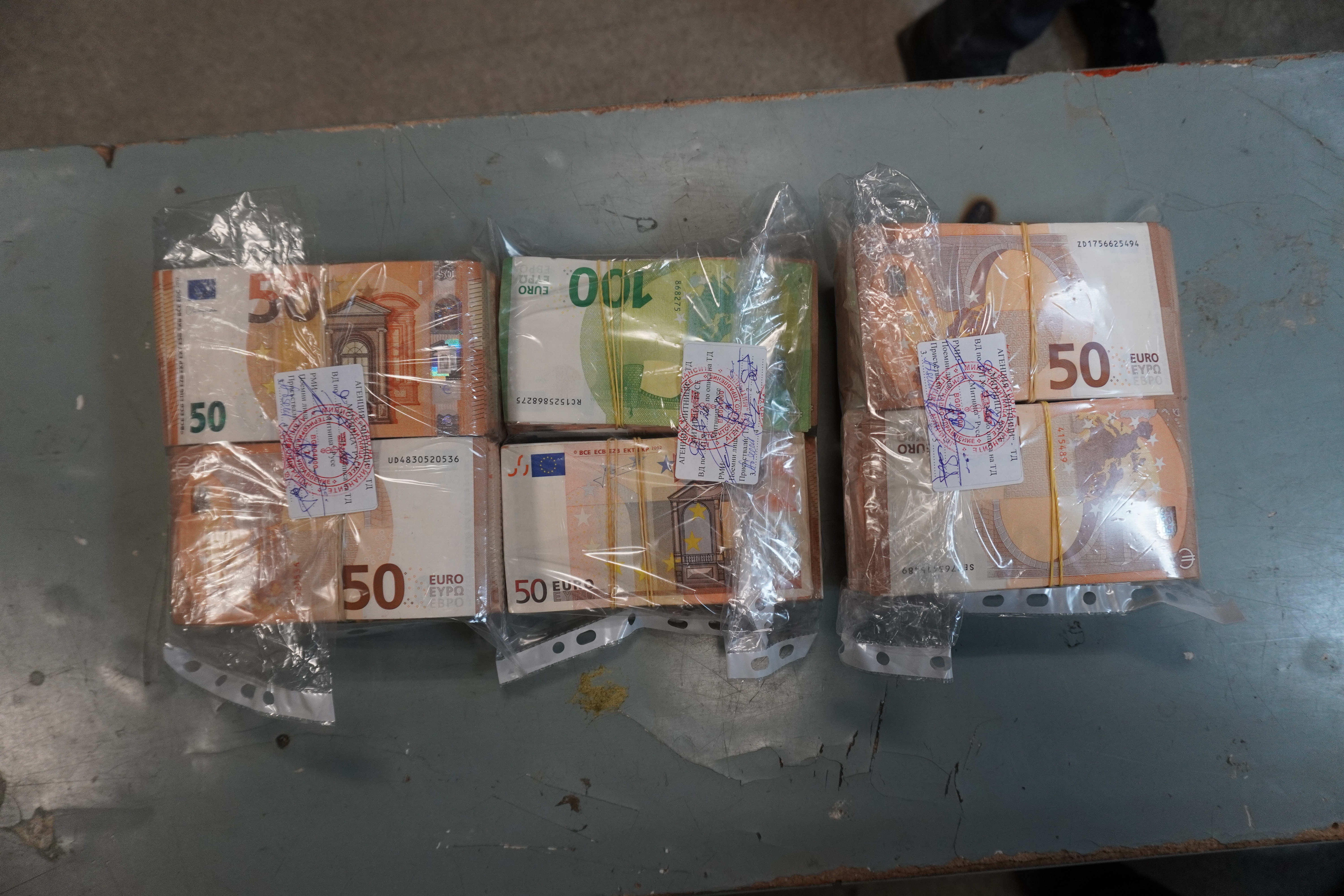Водачът на автомобила декларирал парични средства в размер на 20 000 евро, но при извършената щателна митническа проверка митническите инспектори установяват укрити във фабрични кухини на кабината три пакета с евробанкноти с обща стойност 103 800 евро.