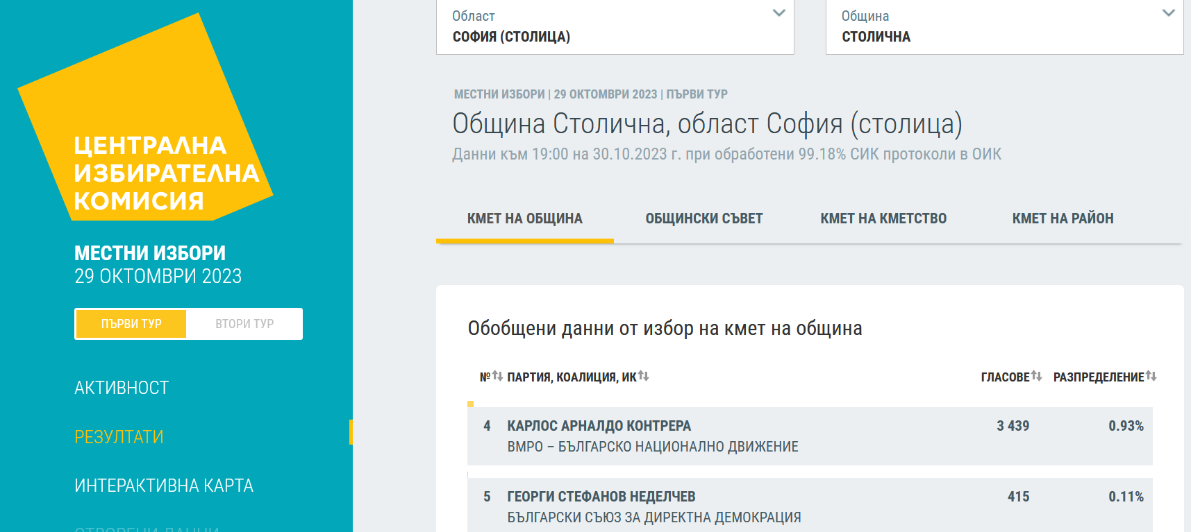 НА ФИНАЛНАТА ПРАВА! ЦИК обяви резултата в София при 99,18 процента. Хекимян...
