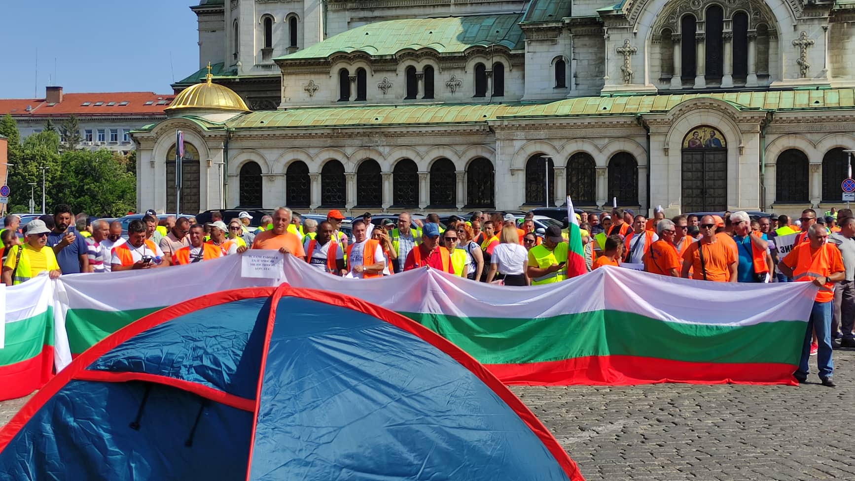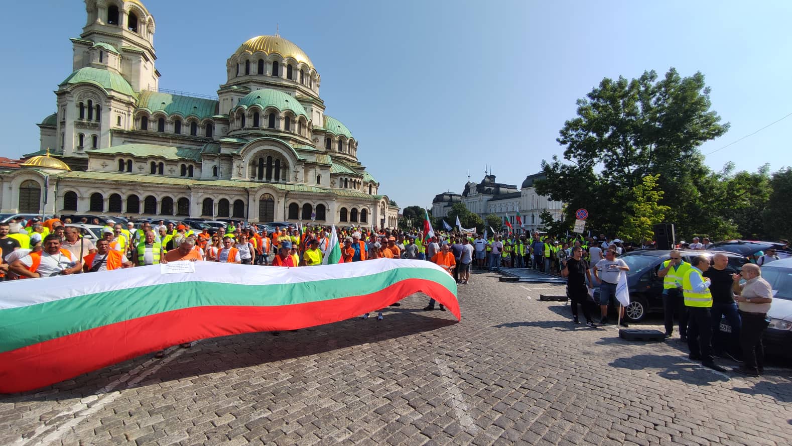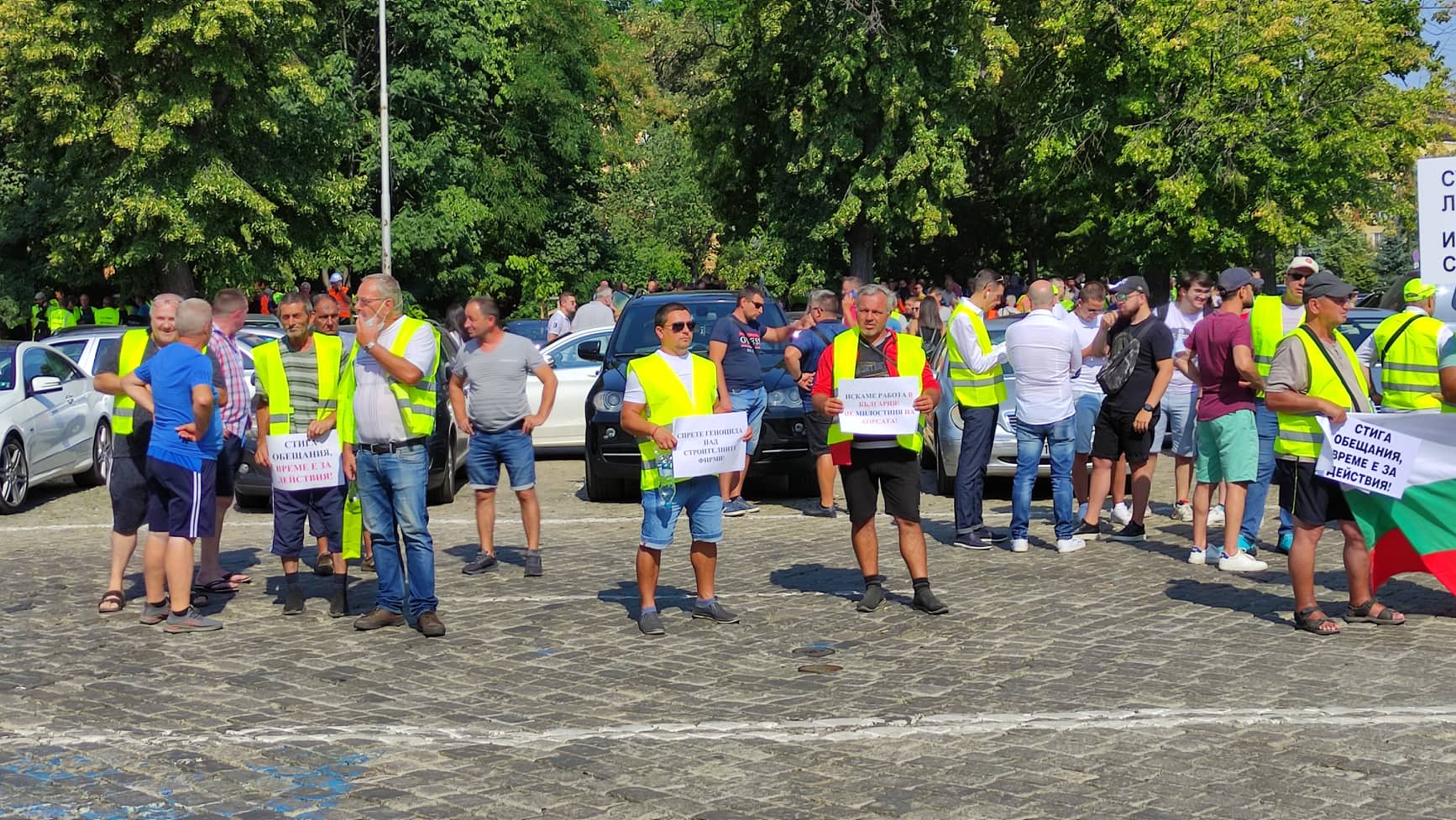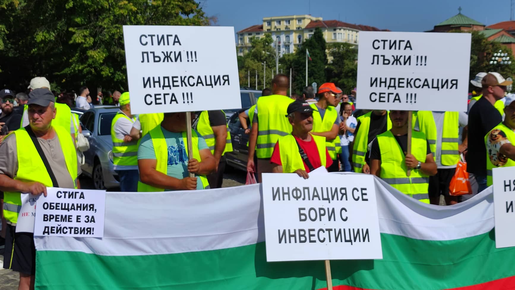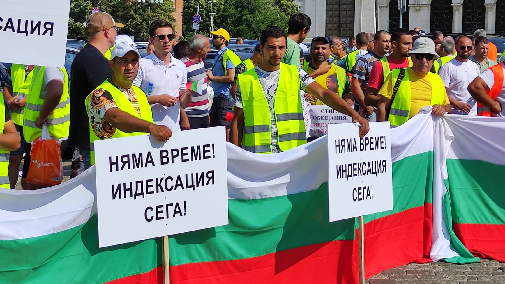 С транспарнати и лозунги "Стига обещания, време е за действия", "Няма време, индексация сега!", "Стига лъжи, индексация се бори с инвестиция", протестиращите пътни строители настояват държавата да им изплати 720 млн.