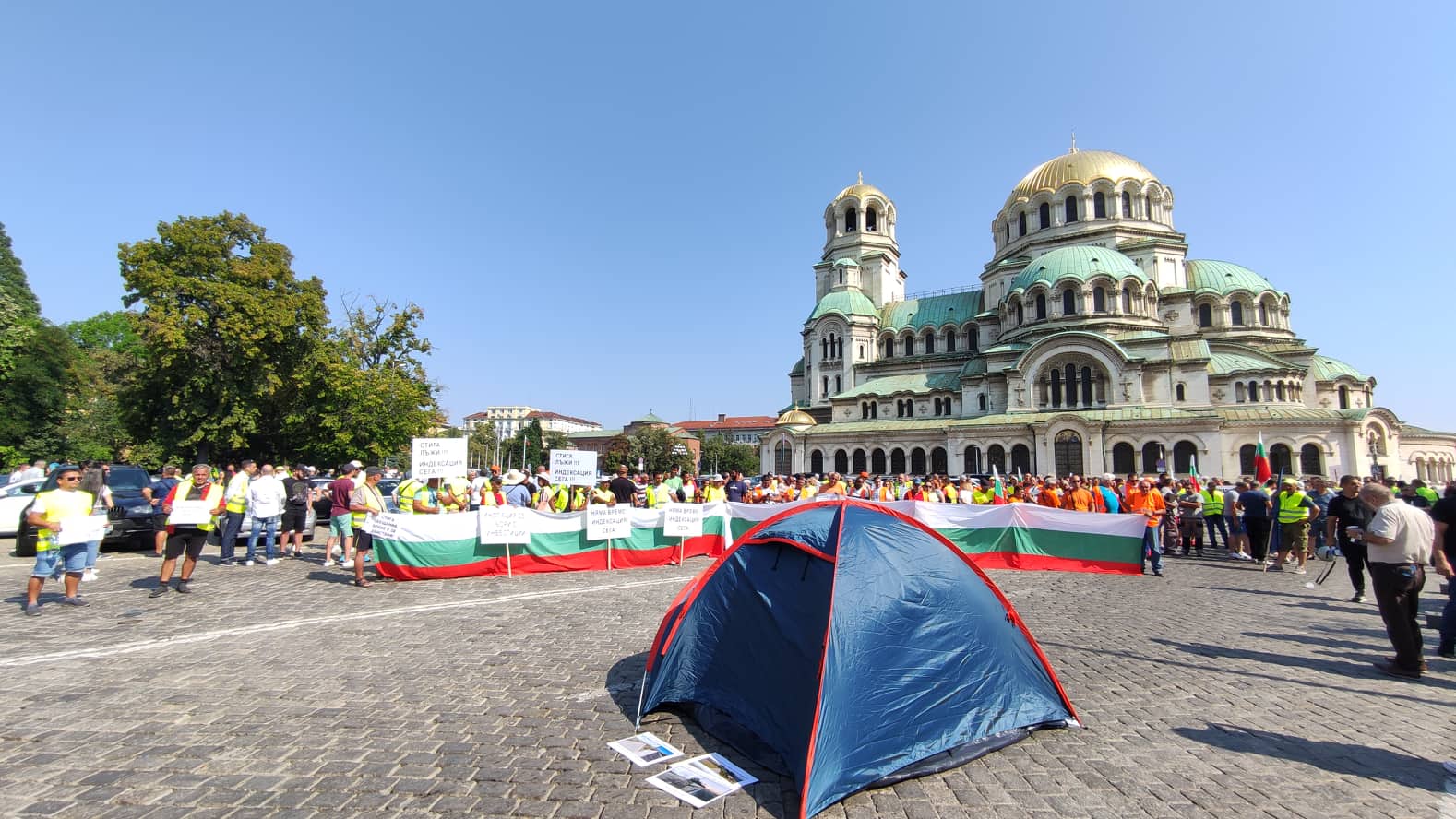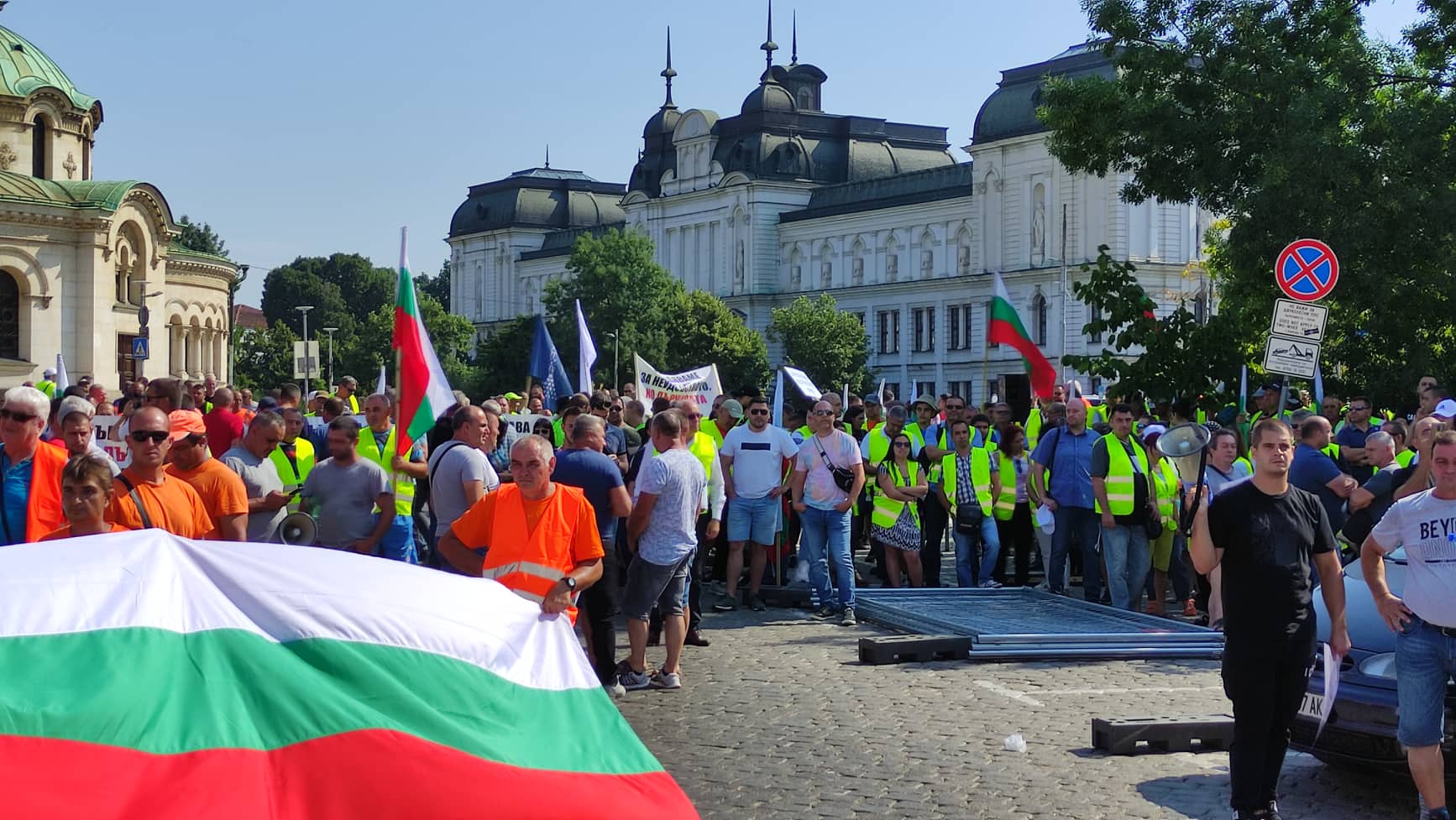 НАПРЕЖЕНИЕТО РАСТЕ: Пътните строители завардиха страничния вход на парламента - искат да си получат изработените 720 милиона (СНИМКИ)