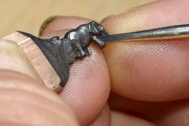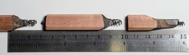 Композицията е издялана от вътрешността на.. обикновен молив за рисуване. Първоначалната идея на Чин била в нея да фигурира само един слон, но се увлякъл и издълбал цяло слонско семейство.