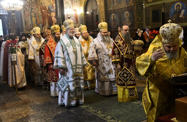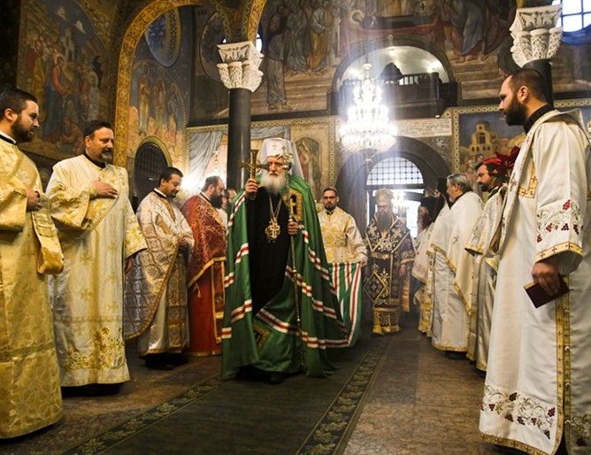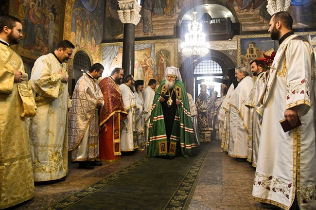 В съслужение с патриарх Неофит бяха митрополитите от Светия синод, епископи и архимандрити на БПЦ, както и представителите на поместните православни църкви в България, игумени на манастири и столични свещеници, предаде БТА.