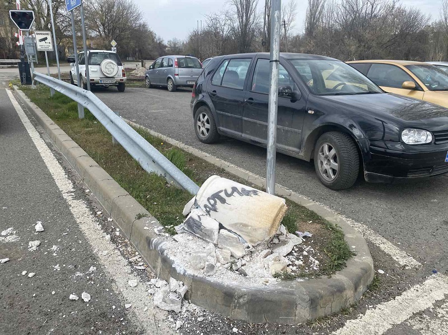 Неизвестни вандали потрошиха бетонно кошче за отпадъци в Ловеч (СНИМКИ)