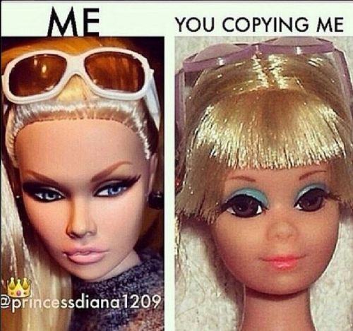 „Това съм аз, а това си ти, опитвайки се да ме копираш“, пише на колажа с двете кукли. Едната е крайно невзрачна, а другата е истинска принцеса – досещайте се сами с коя се оприличава Николета.