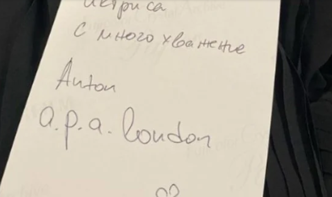 Оказва се, че дизайнерът е гледал спектакъла на Алекс в Лондон - "На живо", и бил толкова вдъхновен от прелестната Сърчаджиева, че решил да й изпрати подарък. "Тази прекрасна рокля пристигна за мен от Лондон!!! Щастлива съм, защото ми я подари момче, което там гледа на живо! Благодаря ти Антон, роклите, които правиш са изключителни! И знам, че ме помоли да не те тагвам и нищо да не пускам, обаче много ме зарадва и искам да го споделя", написа Алекс в Инстаграм.