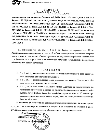 Министърът на здравеопазването издаде заповед, която позволява упражняването на колективни спортове за аматьори на открито, без състезателен характер (в т.ч. футбол, баскетбол, волейбол).