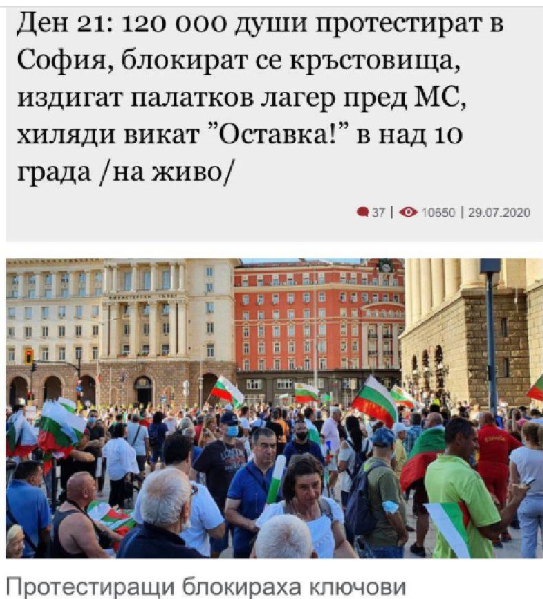 Поредно ново менте пуснаха присъдружните на Васил Божков медии. В желанието си да се харесат на началника си, те съобщават, че протестиращите са 120 000. С просто око обаче се вижда, че те не са повече от 1200.