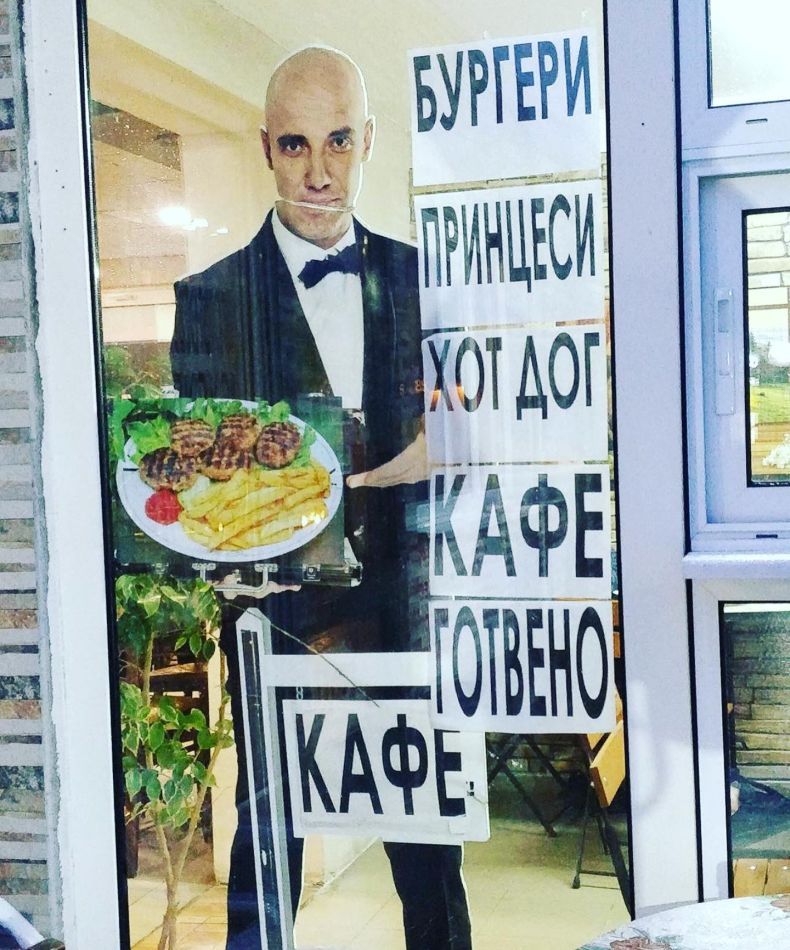 Тази на кръчмата обаче е кандидат за най-креативно попадение. Хем Бахаров с папийонката рекламира типично кръчмарски специалитети като кюфтета, хем добавя и щрих от новото време, като хотдог и бургери, а има още принцеси, готвено и кафе. Личи си, че е имало инцидент с главата на картонената фигура и тя е лепена допълнително.
