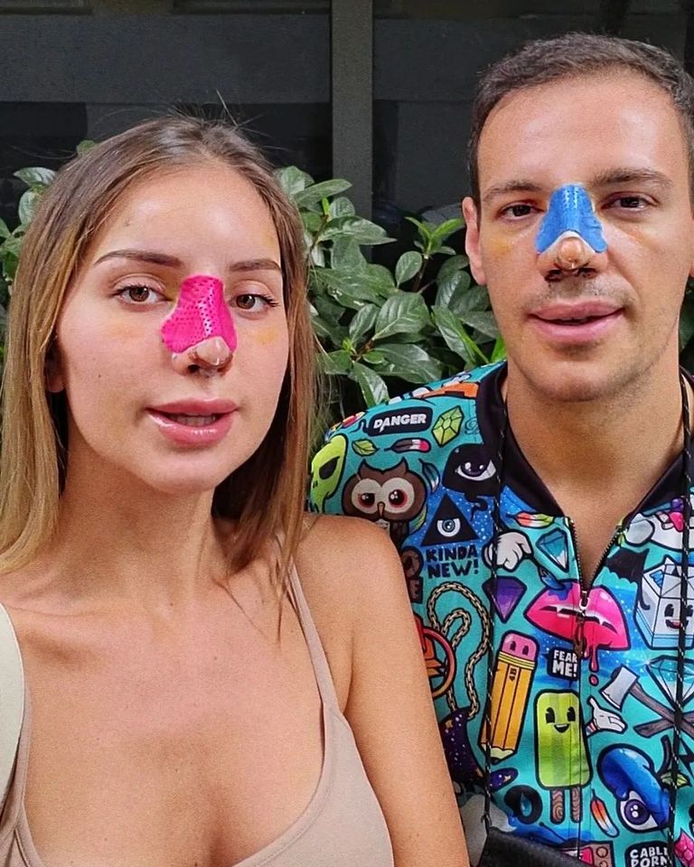 Естествено, като видни инфлуенсъри, Петканови не пропуснаха да се покажат с превързани носове от снимка, направена след операциите им.