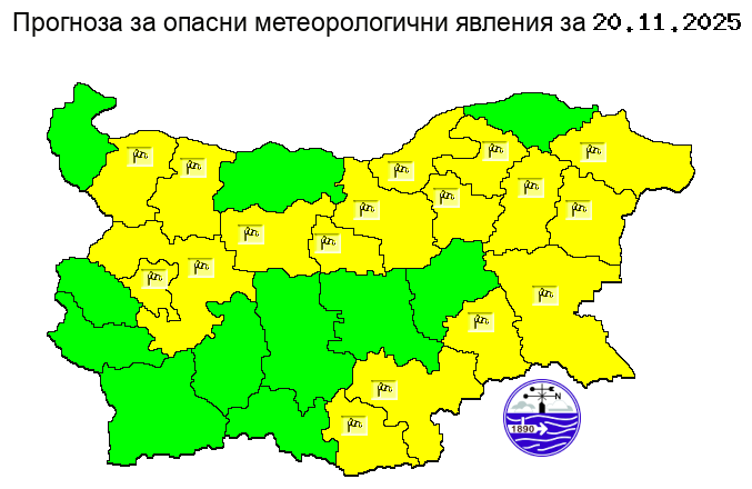 Жълт код за потенциално опасно време и силен вятър е обявен в половин България. Той е в сила за областите: Добрич, Варна, Бургас, Ямбол, Хасково, Кърджали, Шумен, Разград, Търговище, Русе, Велико Търново, Габрово, Ловеч, Враца, Монтана, София област и София град.