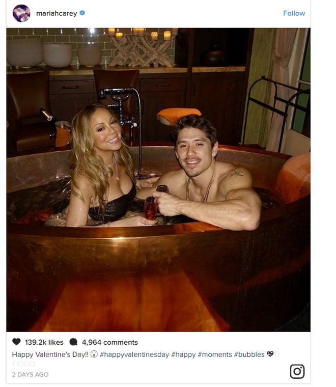 Кери постна в Инстаграм снимка, на която се вижда, че тя и Танака пият шампанско във вана в Деня на Св. Валентин. Сега Марая потвърди любовната си връзка, но отказа да даде повече подробности.