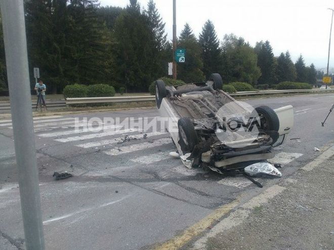 Кола се обърна по таван след неуспешен опит да спре. Инцидентът е станал на пешеходната пътека край гробищата на Бояна в посока центъра на столицата.