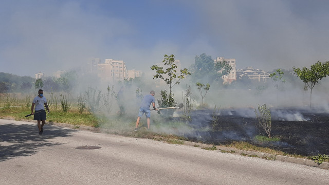 Пожарът е избухнал преди около час до блок 258 А. Живеещи в района предполагат, че огнената стихия е тръгнала от дървени стърготини, хвърлени в тревите.