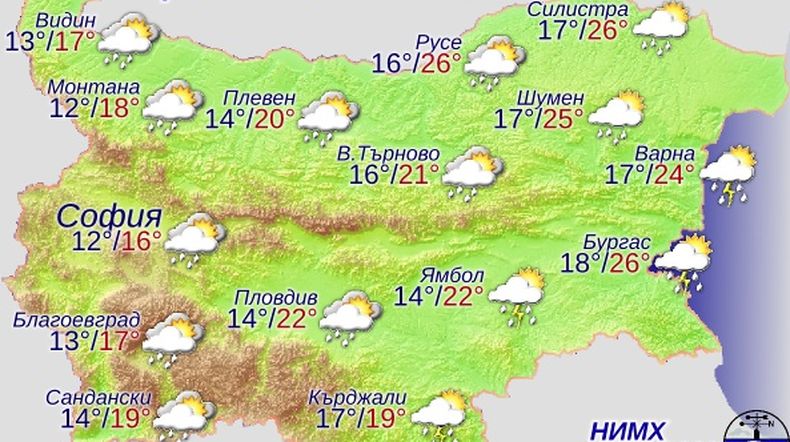 Максималните температури ще са между 21 и 26 градуса, по-ниски на места в Западна България.