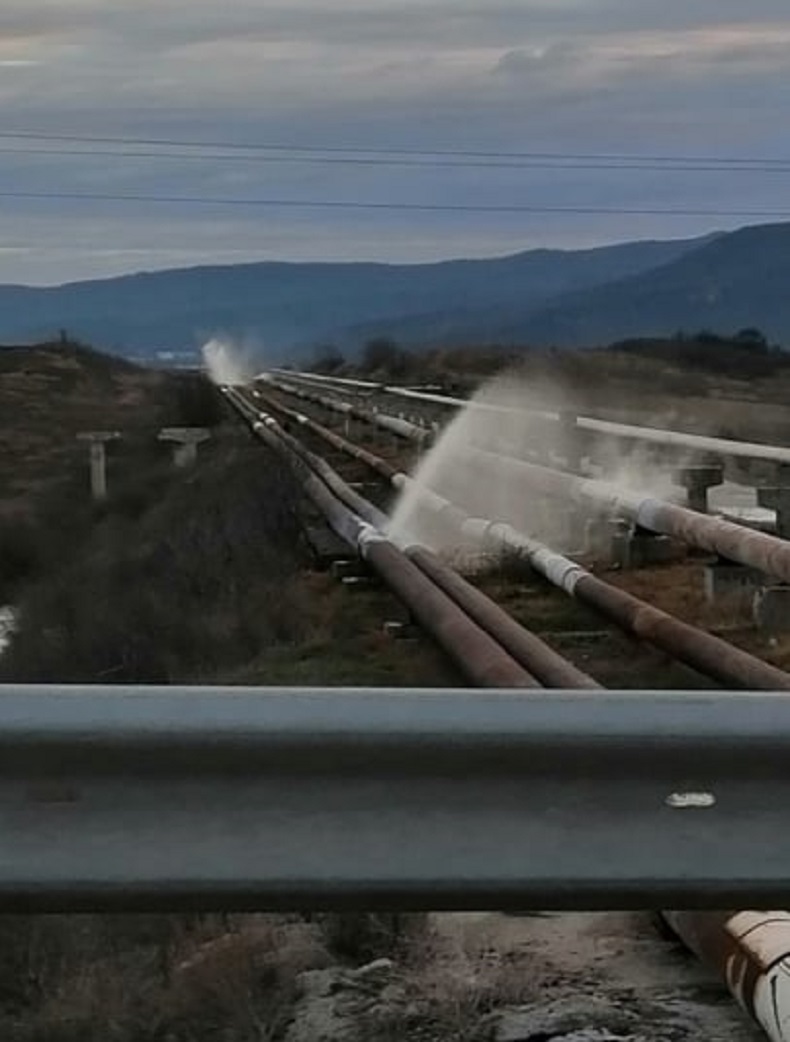 Гражданин е снимал как от тръбите на съоръжението под налягане избива силно корозиращата смес, която представлява отпадъчен продукт от производствения процес. "Снимките са правени тази сутрин, а активни пробойни се забелязват на най-малко две места", уточнява "Девня древна и модерна".