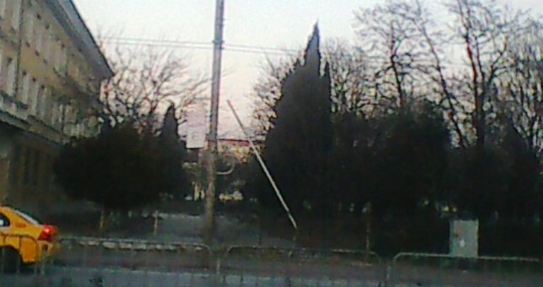 За опасна ситуация сигнализира Петел. Дни наред ученици минават под килнат стълб точно до Техникумите.