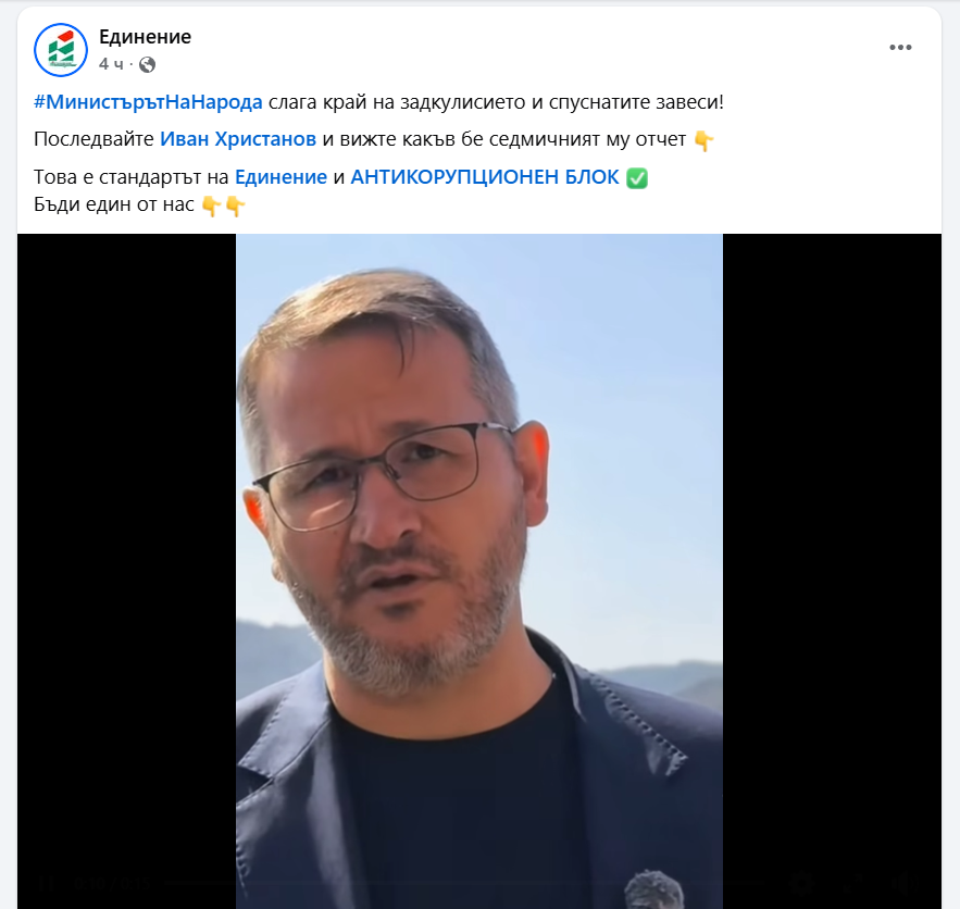 Тя бе провокирана от публикация, придружена с видео клип, в страницата на партията на Христанов - "Единение", в която тутуловалият се еднолично като "министърът на народа", без да е избиран от народа: