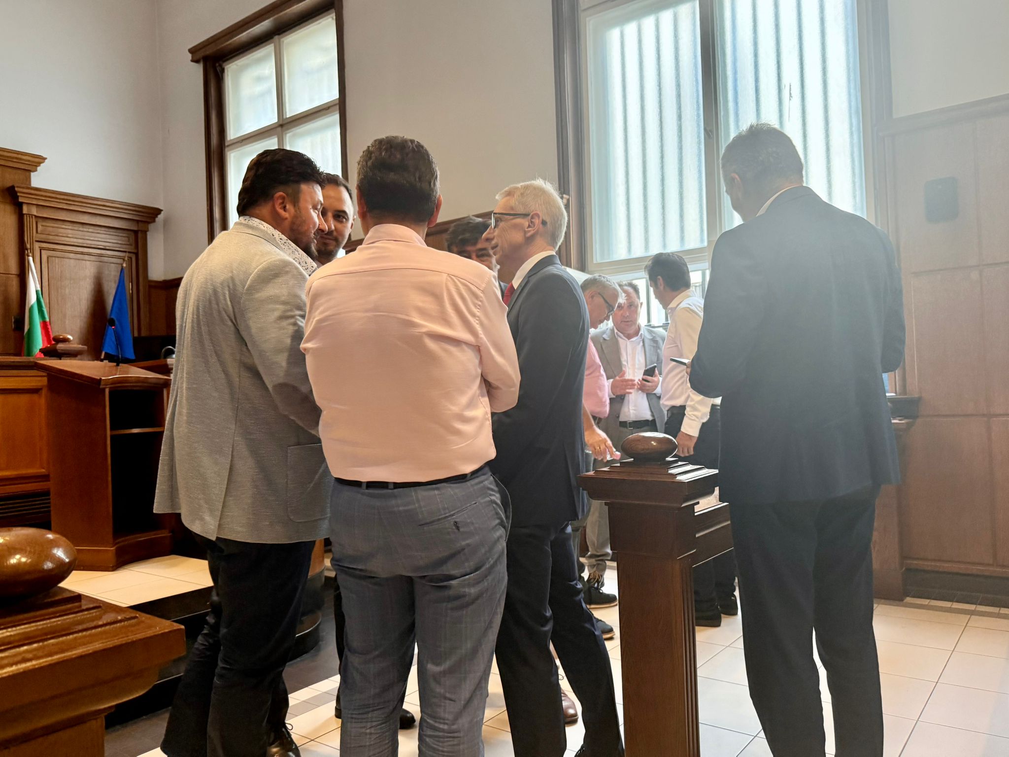 Адвокатите на обвиняемите правят отчаяни опити в залата да докажат, че Софийският апелативен съд не е компетентен да гледа делото и то трябва да се върне във Варненския окръжен съд. В залата се говори, че ако производството се върне в морската ни столица, натискът на представителите на ППДБ върху съдиите там ще успее.