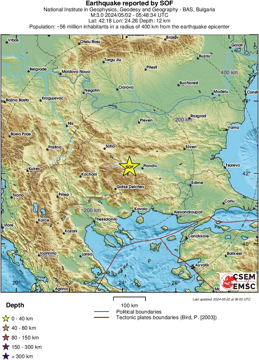 Земетресение със сила 3 по скалата на Рихтер е регистрирано край Пазарджик в 8:48 часа.