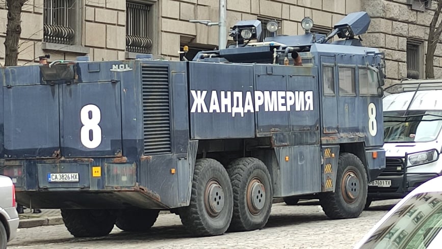 Заедно с оръдието по улица "Г. С. Раковски" са паркирани десетки автомобили и бусове на полицията и жандармерията. В района полицейското присъствие е изключително засилено. Стотици служители на реда са в готовност да охраняват протеста на "Възраждане" и да се включат при ескалация на напрежението.